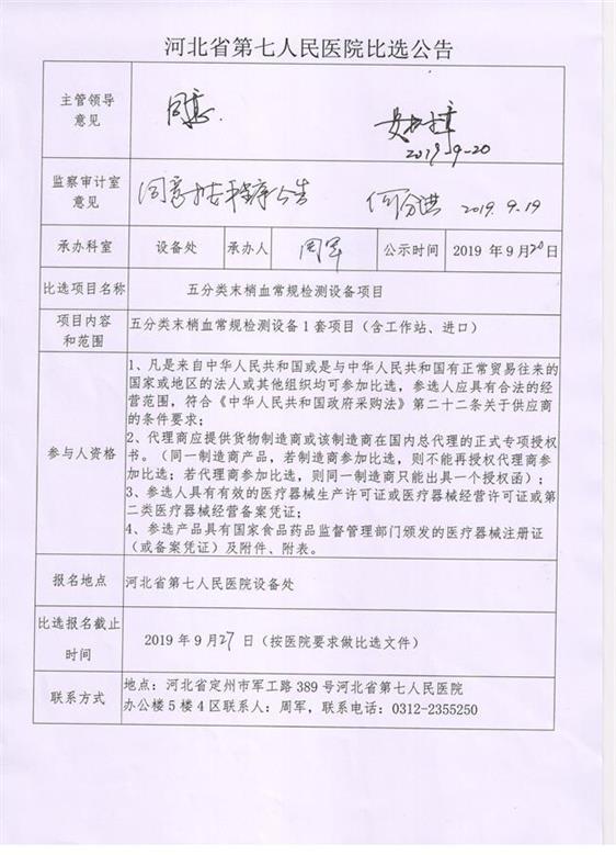 五分类末梢血常规检测设备比选公告