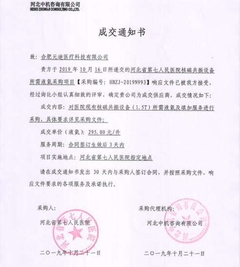 河北省第七人民医院核磁共振设备所需液氦采购公示