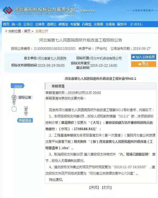 河北省第七人民医院厕所升级改造工程招标公告