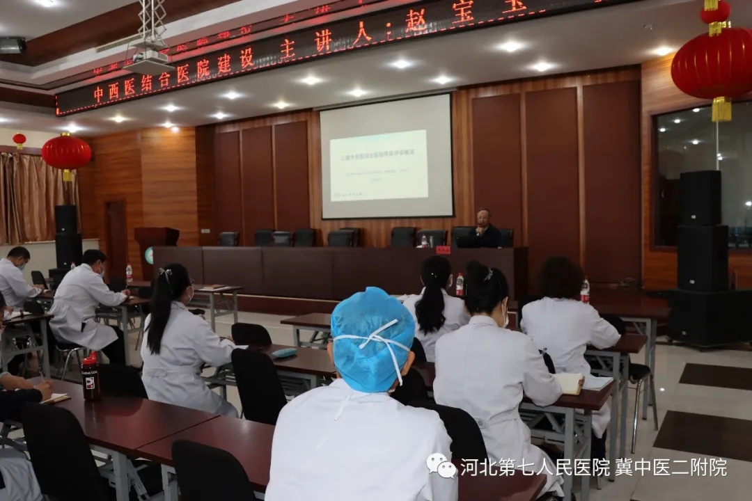 我院自2019年12月12日划归河北中医学院后,纳入中西医结合医院三级管理。赵宝玉多次参加省内外中医院、中西医结合医院评审工作,具有丰富的评审经验。他从三级中西医结合医院评审历史沿革、主要内容、工作要点、方法步骤、目前医院管理新要求、省中医院以评促建取得的成绩六个方面进行了详细阐述。指出了我院目前存在的优势、不足以及努力的方向等。
