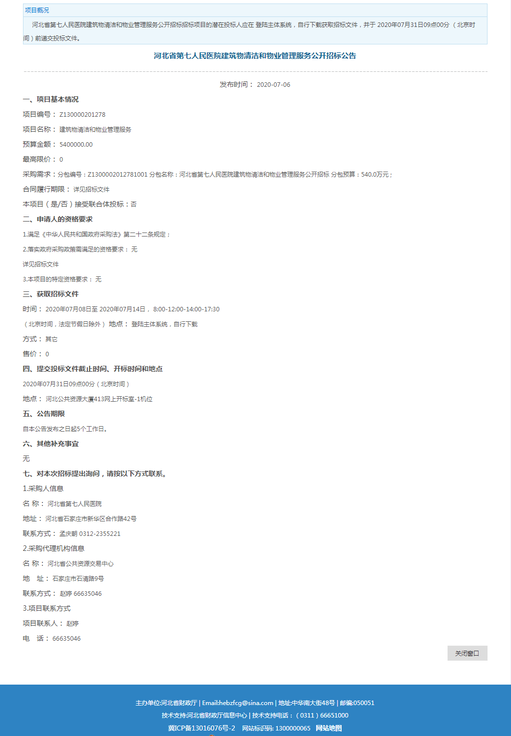 医院物业管理、建筑物保洁服务项目招标公告