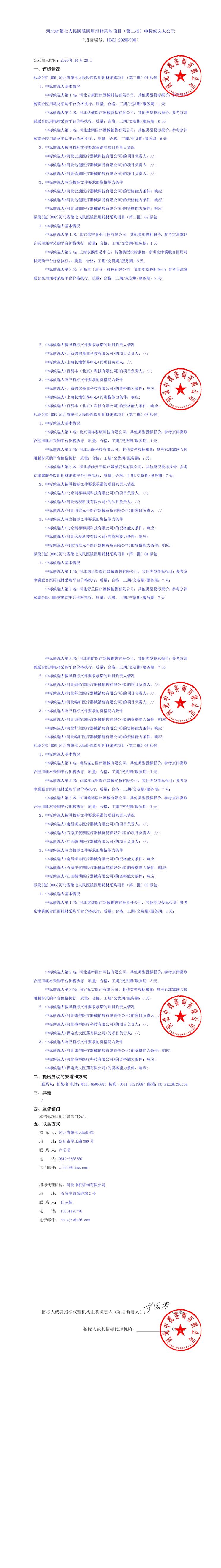 医用耗材采购项目(第二批)中标候选人公示