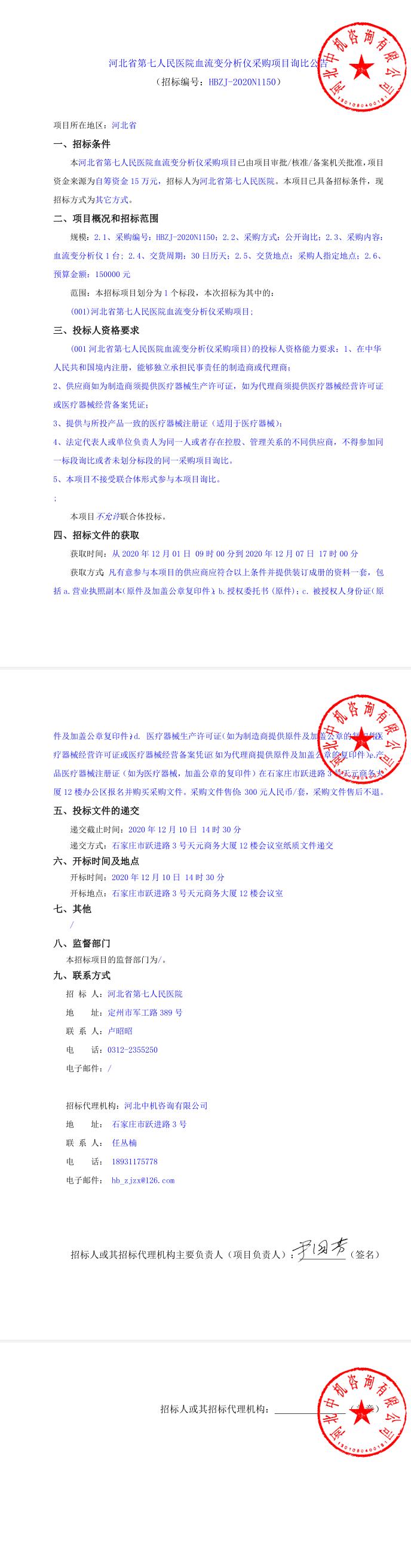 血流变分析仪采购项目询比告