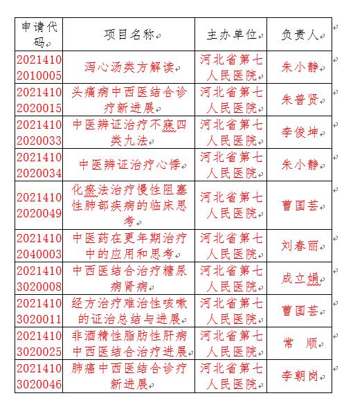 这10项继续医学教育项目是我院自转型中西医结合医院以来,首次申报成功的项目,现将目录公布如下: