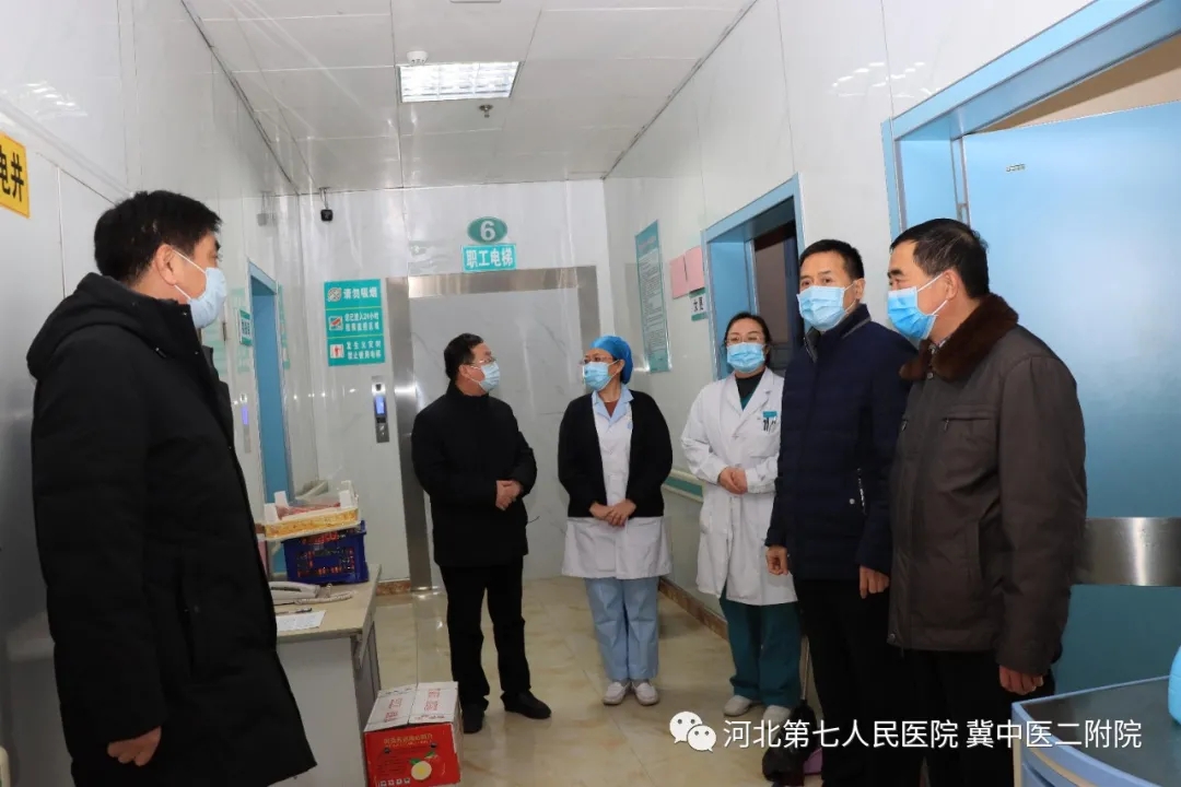 2月1日上午10:30,我院党委书记安树章、院长杨永利、副院长任志学、院办室主任郝建英和党办室主任刘永刚一同看望慰问日夜奋战在一线的发热门诊、发热病区医务人员,还有正在灿美酒店隔离的医护人员。