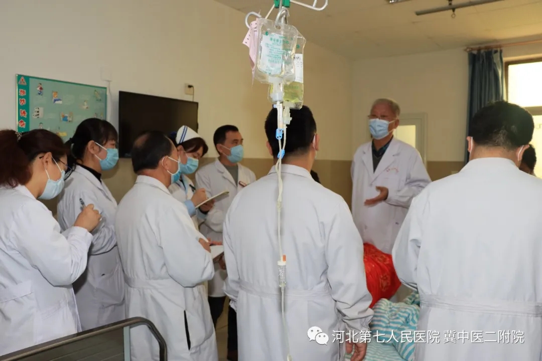 专家们认真听取了主管医生每个查房病例的病史汇报、目前治疗方案后,亲切的走到病人床旁询问病情,赵主任进行了细致的查体,黄主任现场诊脉,两位专家分别给出了中西医两方面诊疗意见并分别作详尽的讲解,大夫们认真学习并做好笔记。