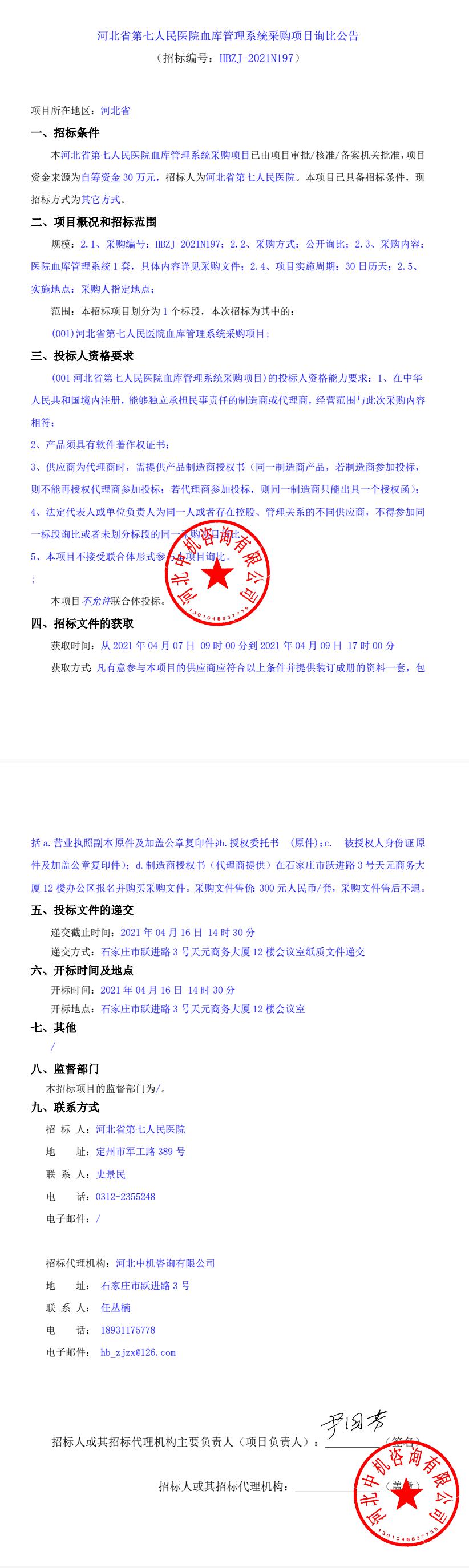 血库管理系统采购项目询比公告