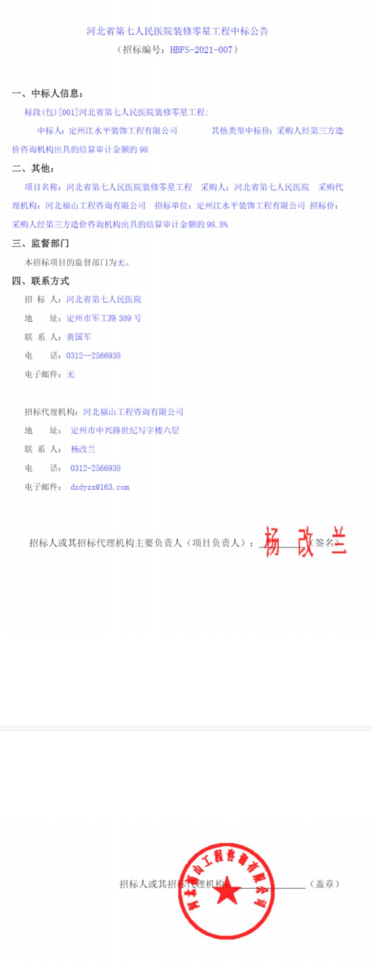 装修零星工程中标公告