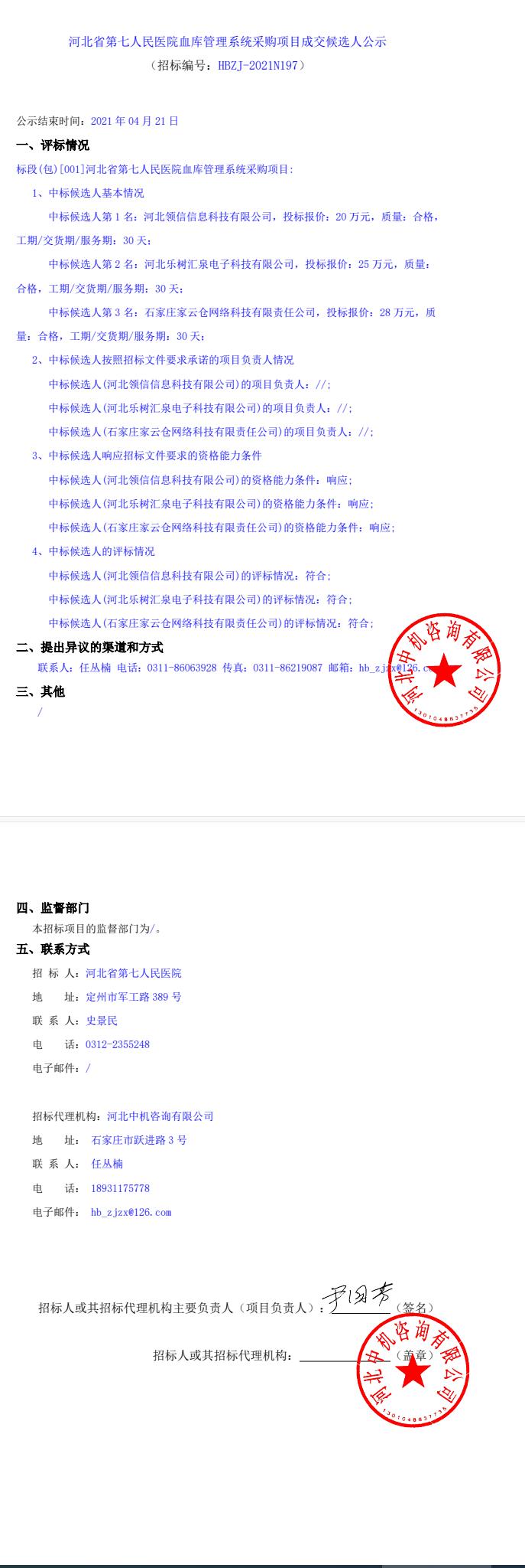 血库管理系统采购项目成交候选人公示
