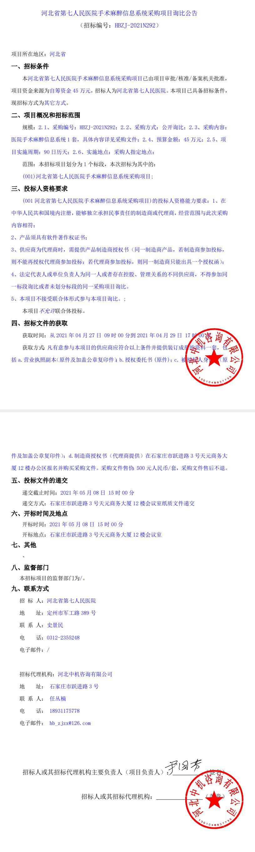 手术麻醉信息系统采购项目询比公告