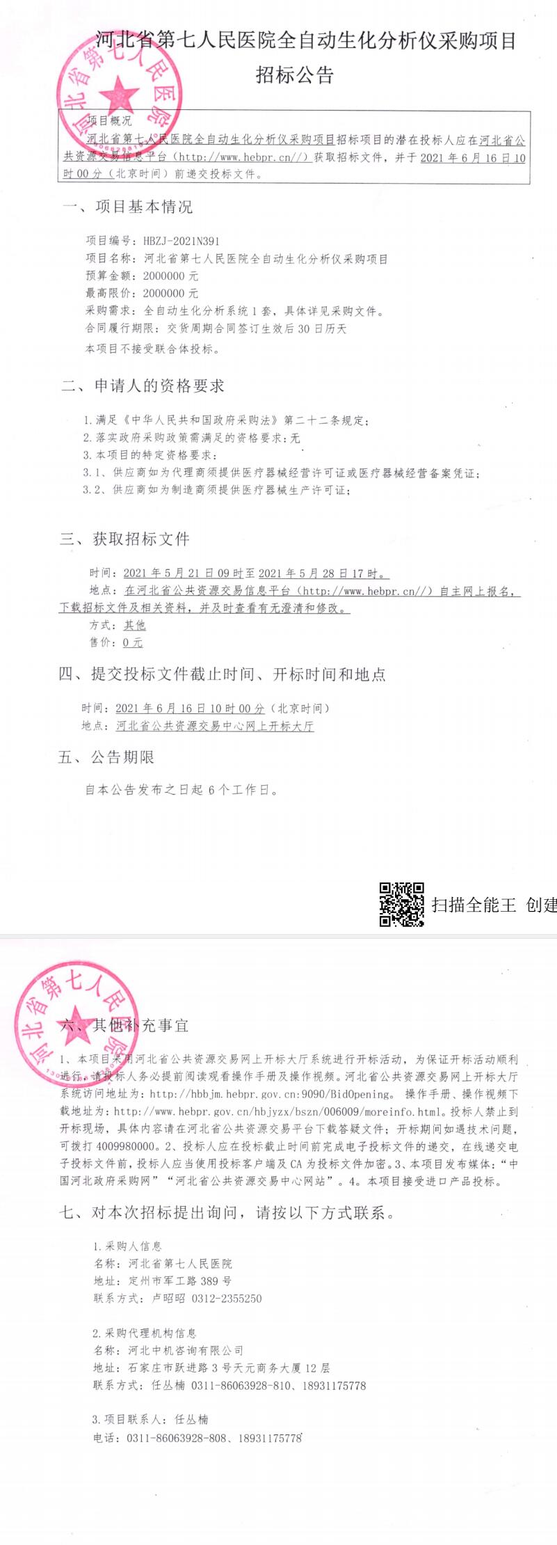 全自动生化分析仪采购项目招标公告