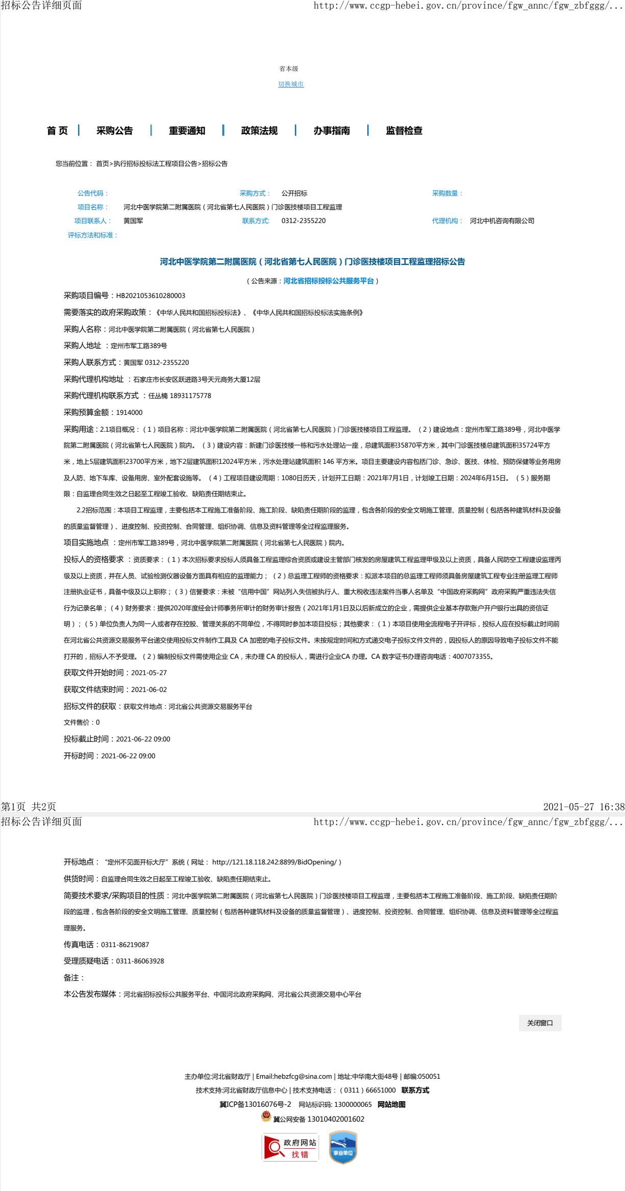 门诊医技楼项目工程监理招标公告