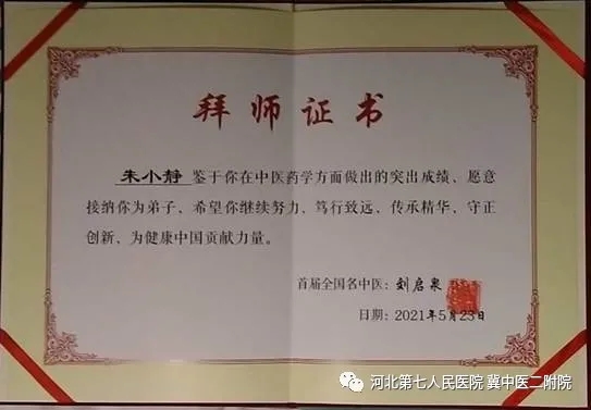省七院朱小静成为全国名中医刘启泉“师带徒”弟子
