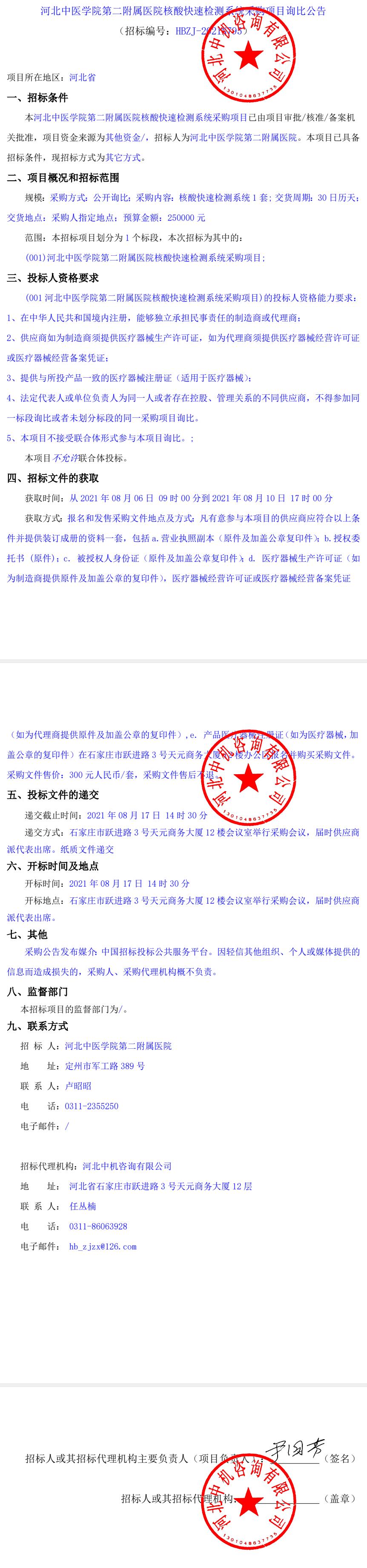院核酸快速检测系统采购项目询比公告