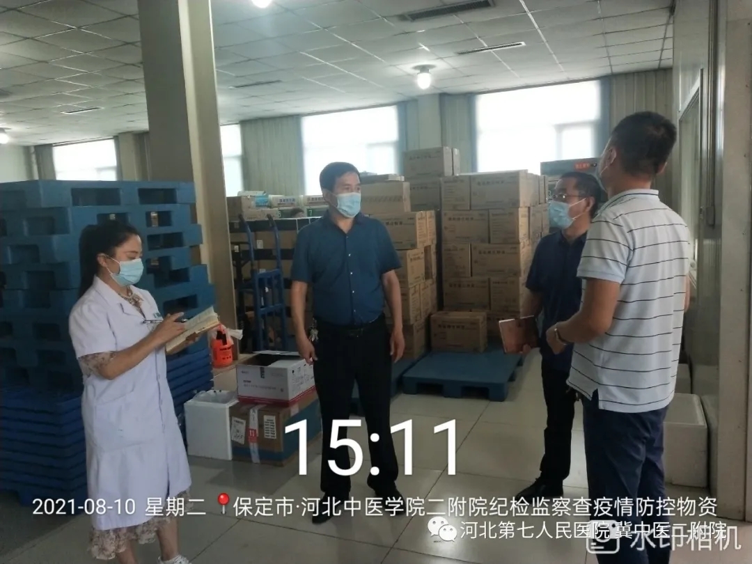 为加强对医院防控工作重点环节的监督检查,确保防疫物资规范管理和使用,8月10日下午,省七院纪委书记任志学带领医院纪委、监察审计室人员,对药库、卫生材料库防疫物资和政府调拨物资管理情况进行了专项检查和指导,查看了有关台账,监察审计室现场盘点医用防护口罩、医用一次性防护服等防控物资。.jpg)