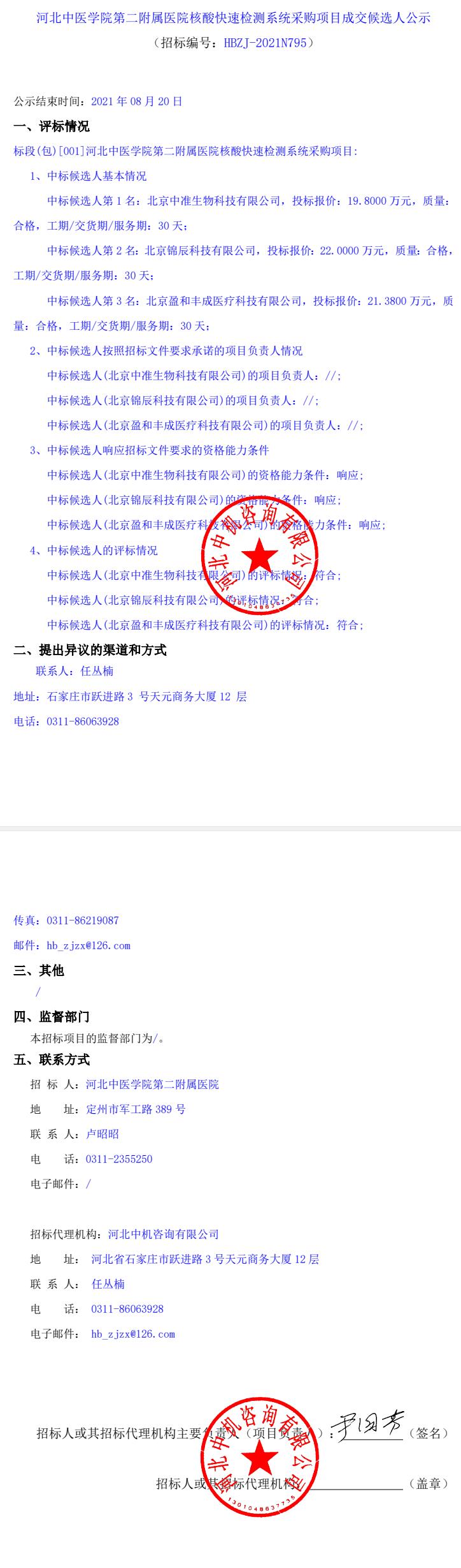 核酸快速检测系统采购项目成交候选人公示