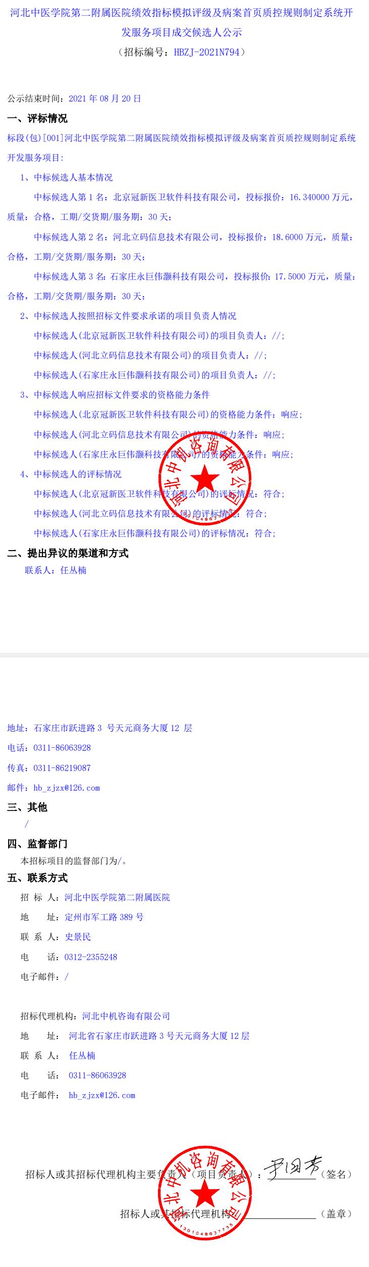 绩效指标模拟评级及病案首页质控规则制定系统开发服务项目成交候选人公示