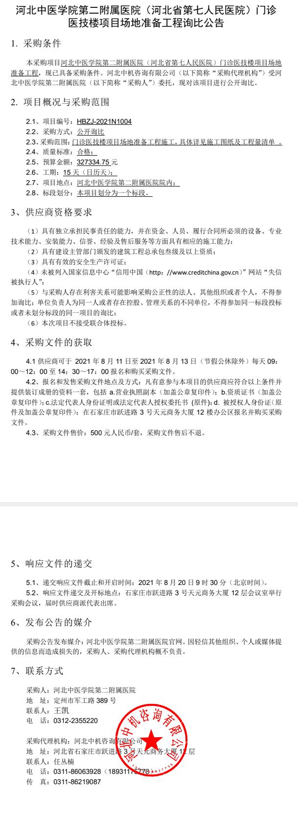 门诊医技楼项目场地准备工程询比公告
