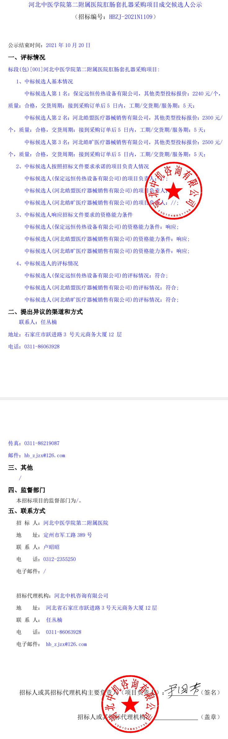 肛肠套扎器采购项目成交候选人公示