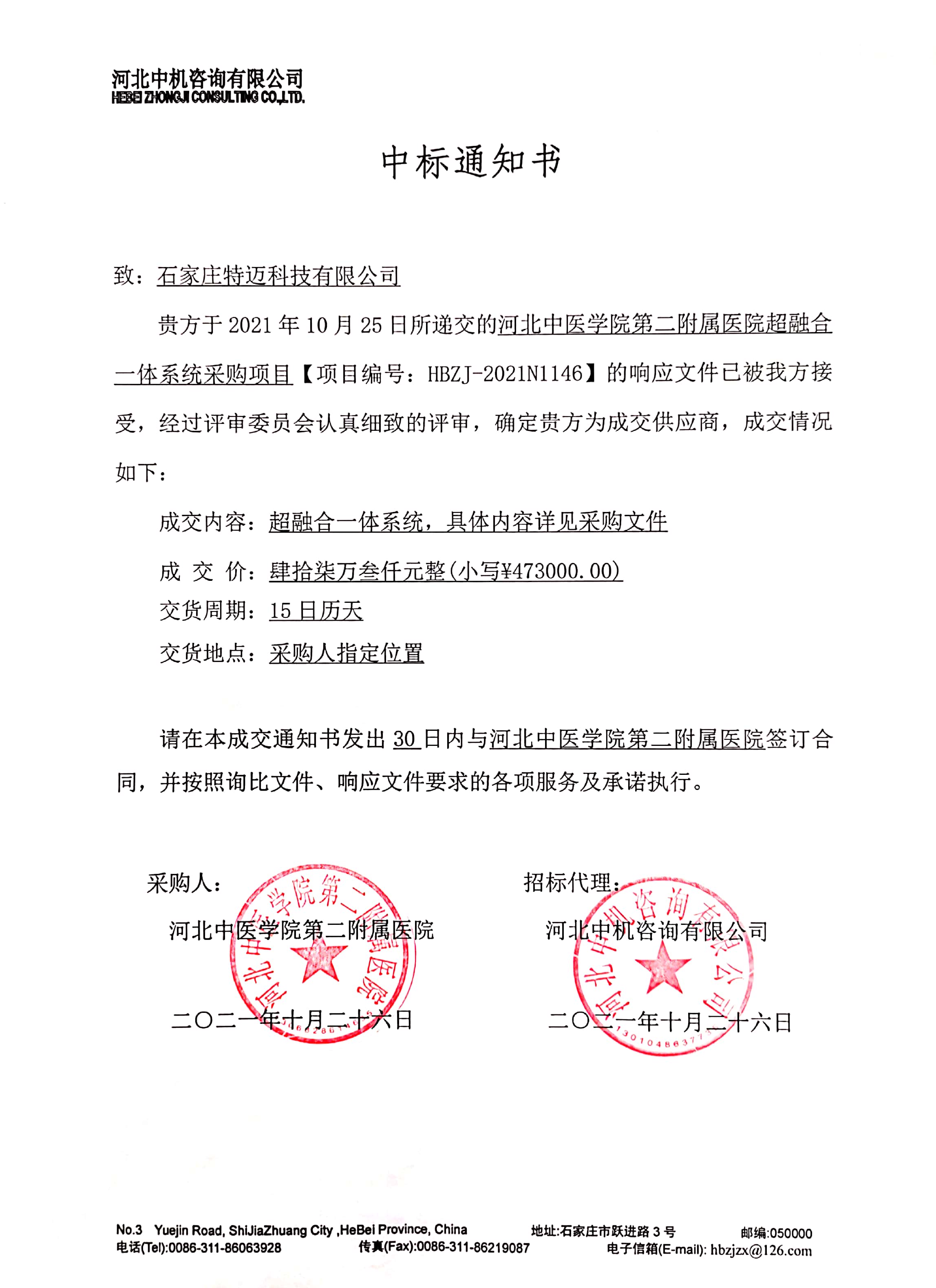 超融合一体系统采购项目中标通知书