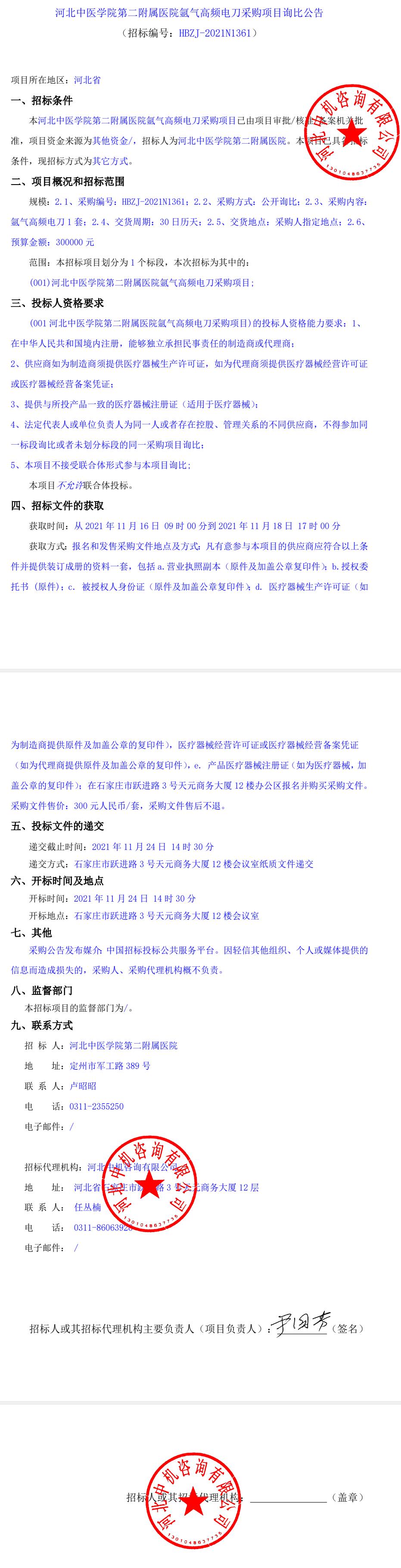 氩气高频电刀采购项目询比公告
