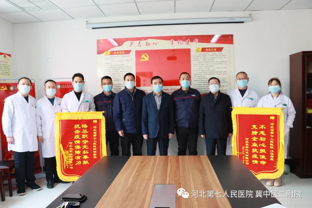 今天是腊月二十八,上午10:30许,河北长安汽车有限公司供应链主管陈晶岩、采购部主任冯淑忠特意为医院送来两面锦旗,感谢省七院医务人员一年来“不忘初心担使命,支持企业抗疫情”“恪尽职守无私奉献,抗击疫情保障有力”的无私奉献精神。