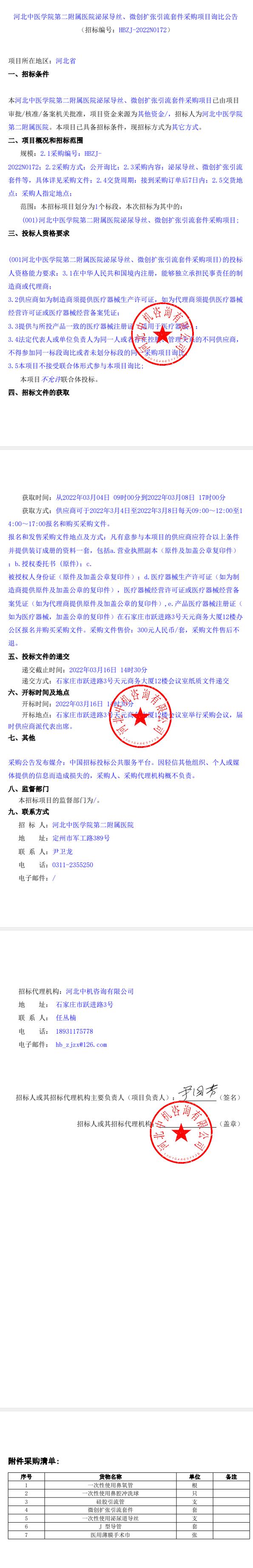 泌尿导丝、微创扩张引流套件采购项目询比公告