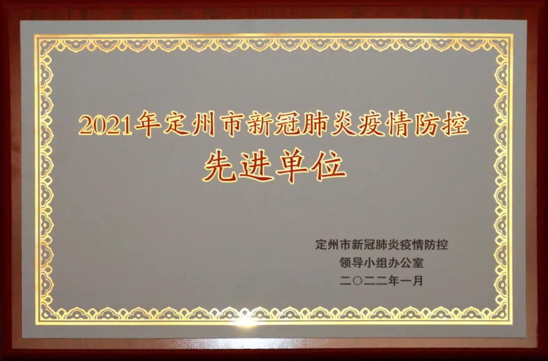 近日,定州市新冠肺炎疫情防控领导小组表彰了“2021年新冠肺炎疫情防控”先进单位和先进个人。