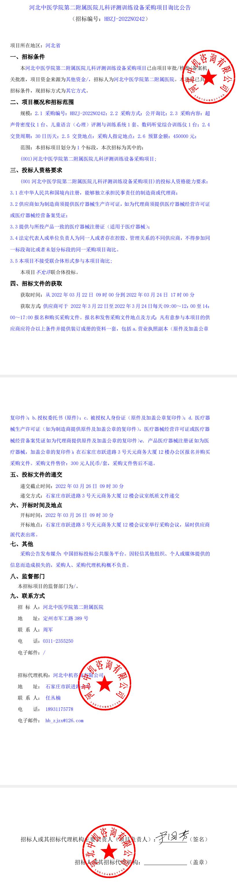 儿科评测训练设备采购项目询比公告