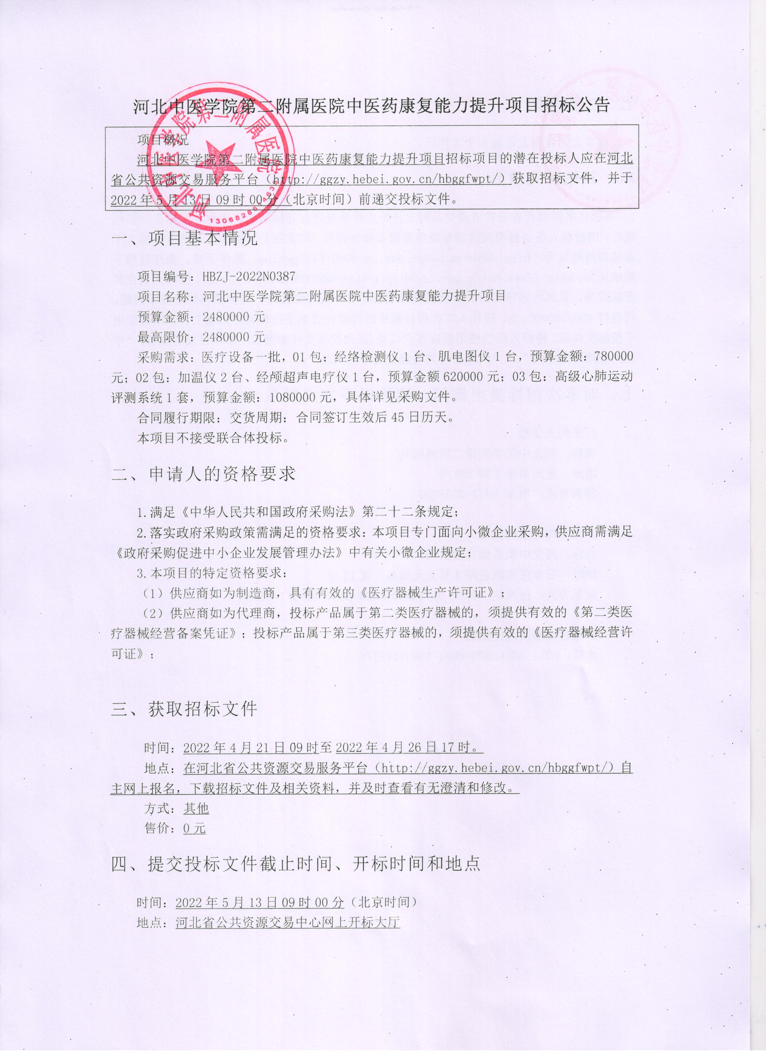 中医药康复能力提升项目招标公告