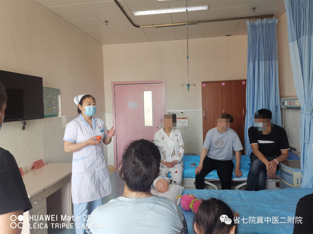 护士长李幼娟及护士王琳手把手教产妇和家属们正确抱奶姿势及含接姿势,一对一宣教指导母乳喂养的好处、母乳喂养的技巧等知识,并解决孕产妇们哺乳中的疑问和难题,帮助宝妈树立信心,促使了母乳喂养的成功。