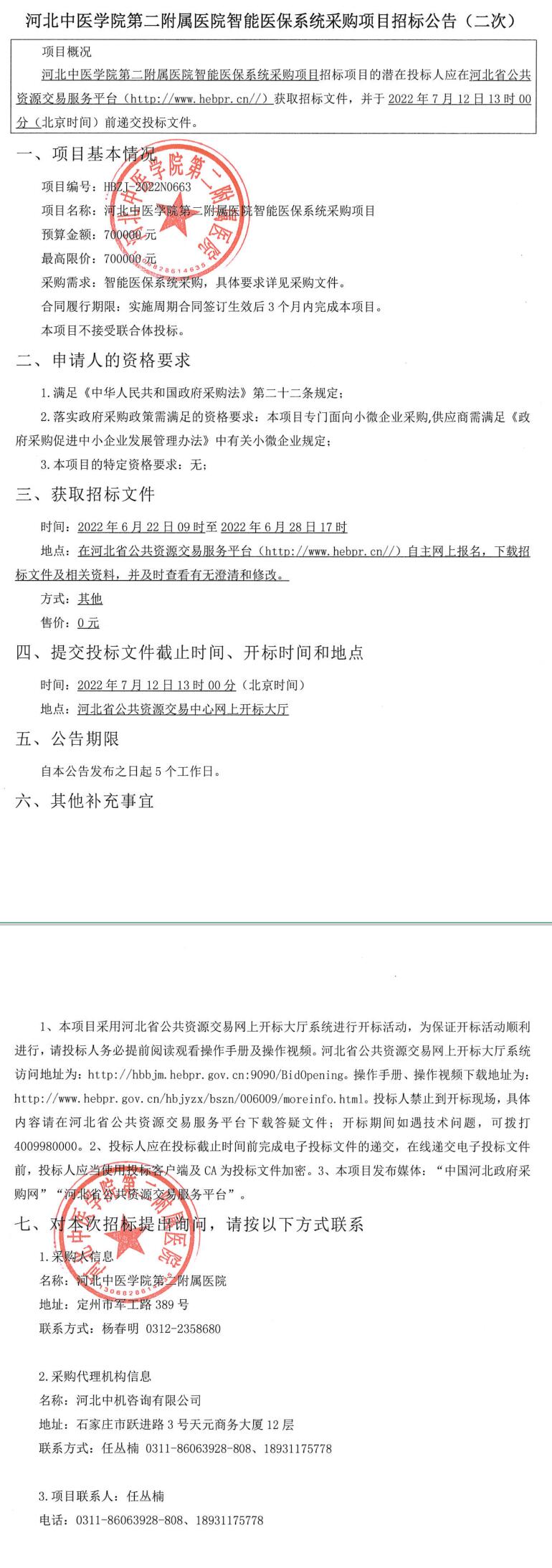 智能医保系统采购项目招标公告(二次)