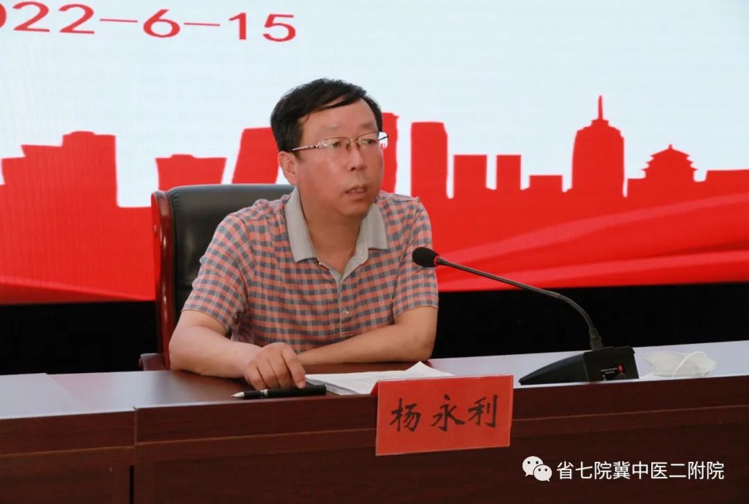 杨永利最后强调,当前,我院全院上下正在为创建“三级甲等中西医结合医院”而努力,在座的各位党组织书记要统一思想,提高认识,积极行动起来,全面紧张起来,以高度的责任感和使命感、以饱满的热情和扎实的行动,带领广大党员干部把等级医院评审标准融入到日常工作当中,把创三甲工作作为今后努力的方向与目标,集全体之智慧,举全院之力,克服一切困难,共同完成历史赋予我们这一代人的神圣使命。