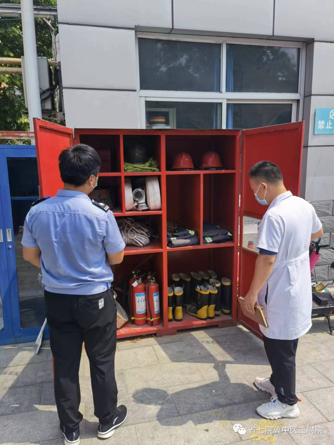 近日迎来持续高温天气,气候炎热干燥,极易引发火灾,加之近期我院周边地区已发生多起小型火灾事故,防火工作尤为严峻。保卫处联合应急办根据目前情况,具体分析研判,对院内防火重点部位、火灾易发部位进行消防安全专项检查。.jpg)