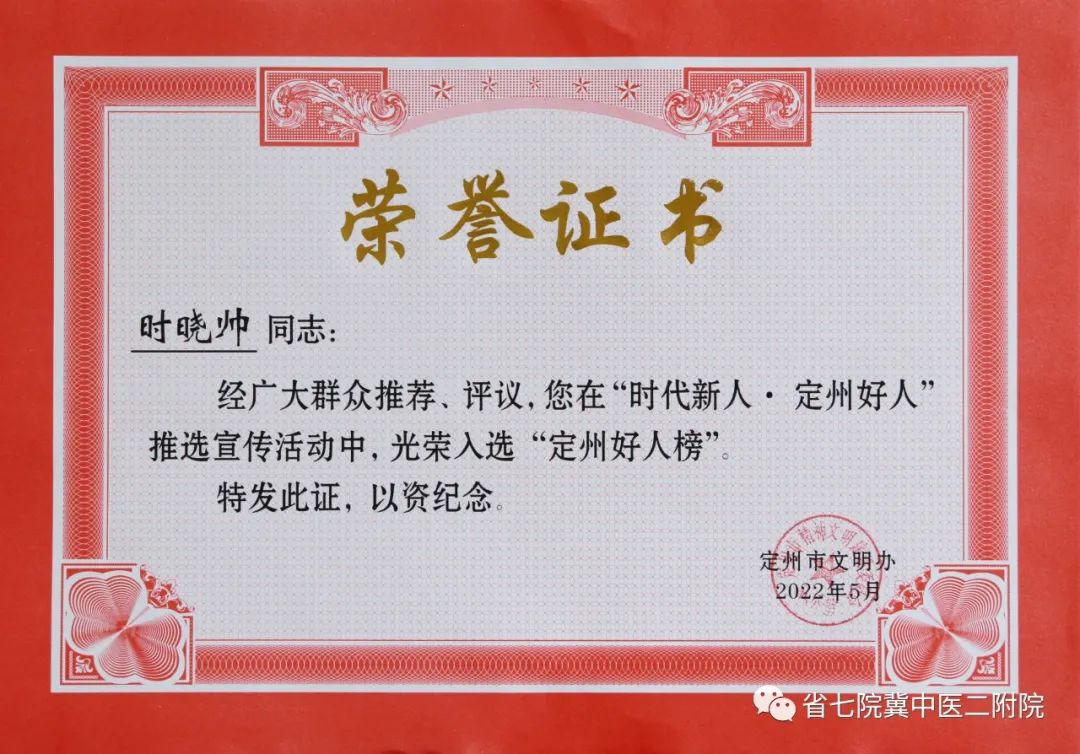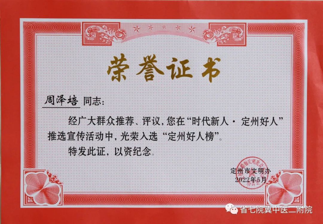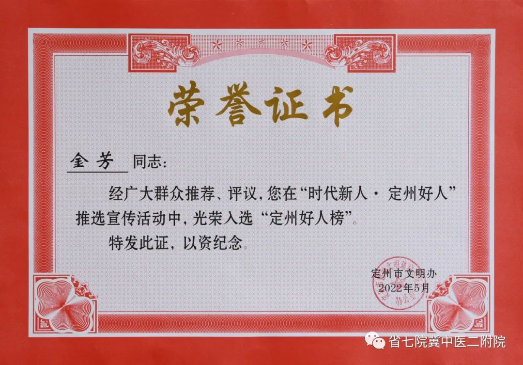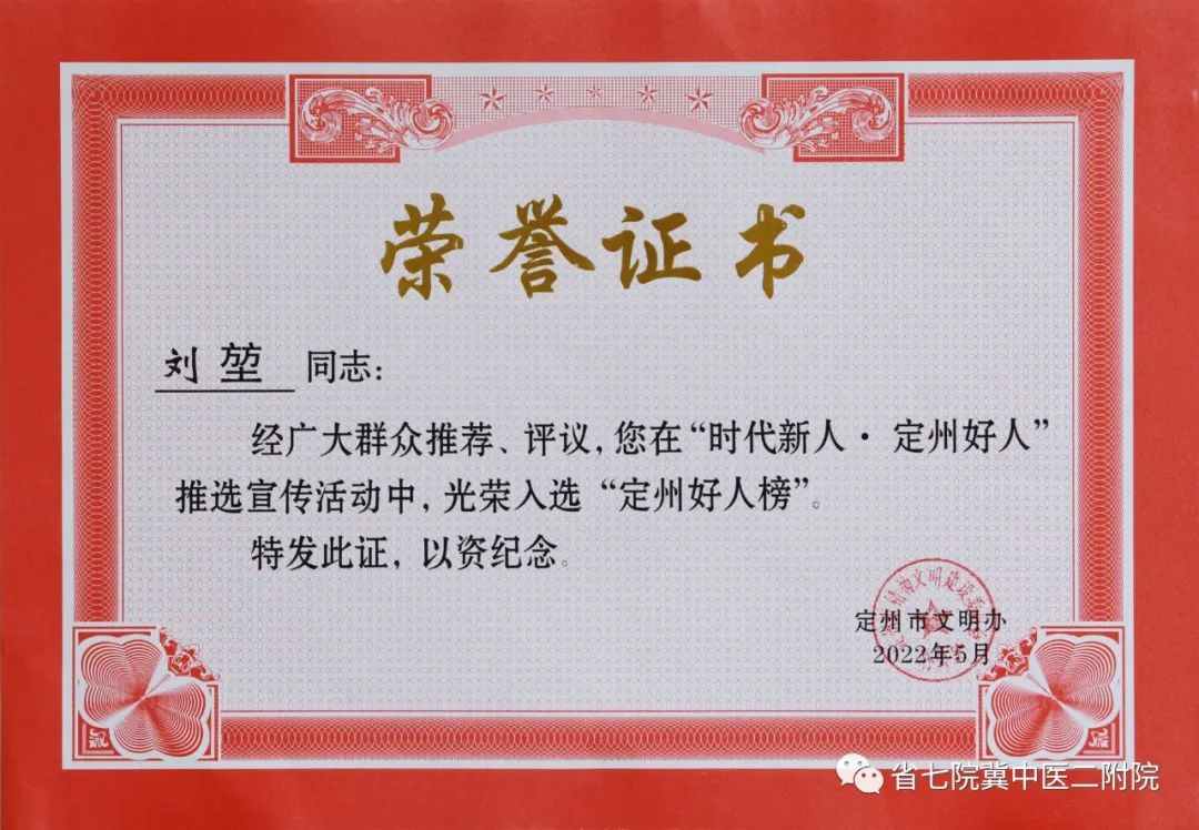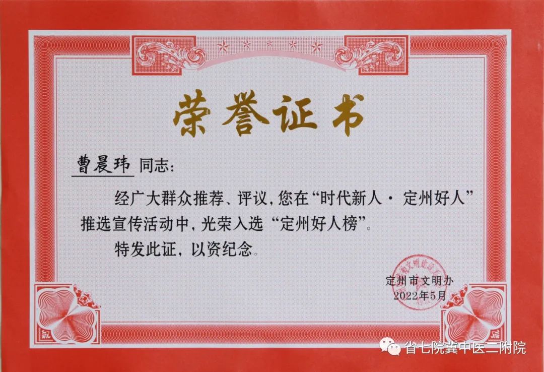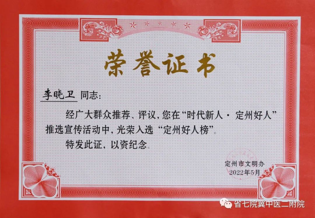 省七院6名医务工作者光荣入选“定州好人榜”