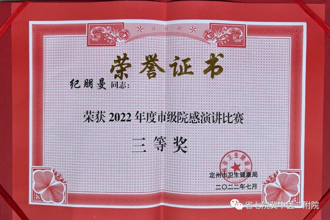 2022年6月份河北省中华预防医学会医院感染控制分会下发了《关于举办第三届“爱院感.致青春”演讲比赛的通知》,定州市卫生健康局以此为契机,组织了我市二级以上医疗机构的市级“爱院感.致青春”的演讲比赛。