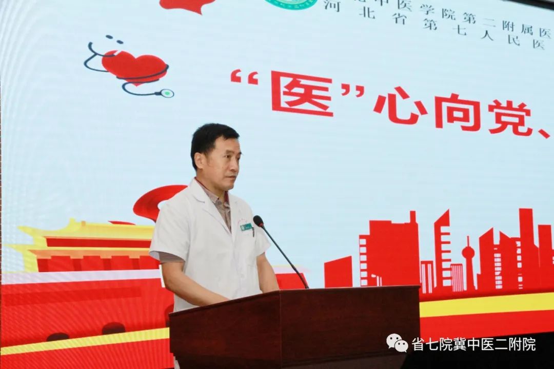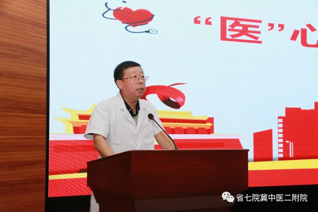 杨永利强调,今年中国医师节主题是“‘医’心向党、踔厉奋进”,一代代医务工作者在中国共产党的坚强领导下,与党同心、与党同行,践行初心使命,以医者大爱,全心全意为人民群众的身体健康呕心沥血,是患者托付生命的信赖的人。他指出,院兴我荣、院衰我耻,医院的明天就是我们的未来,全院干部职工要团结一心、同舟共济,共同为医院建设成为三级甲等中西医结合医院而不懈奋斗。