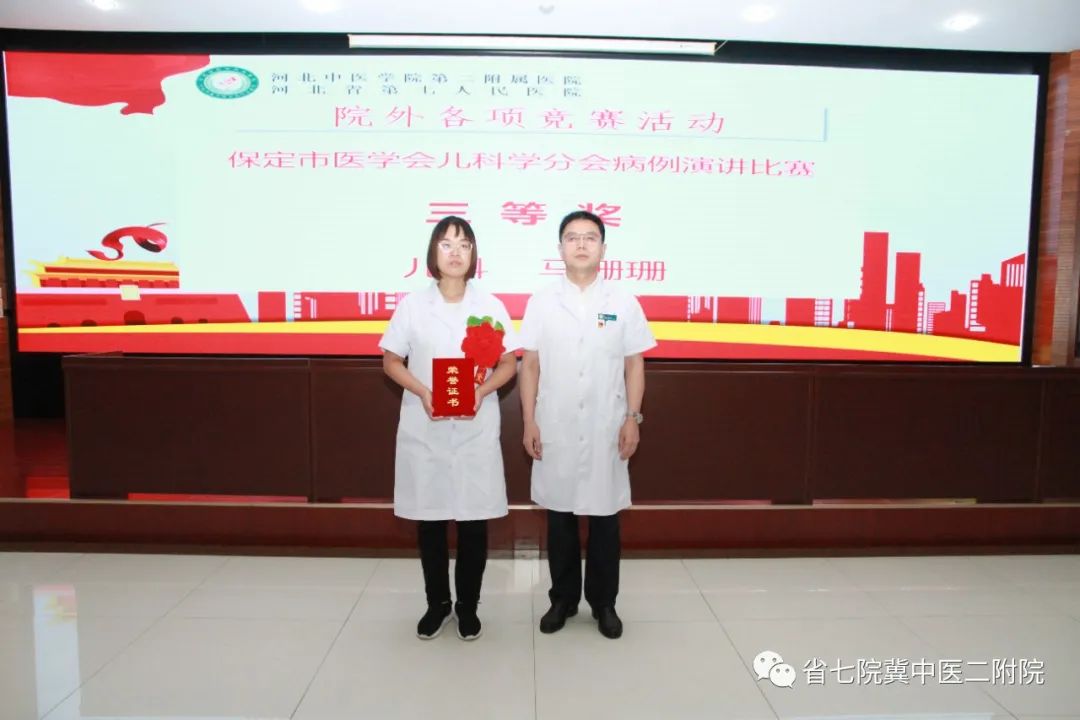 在保定市医学会儿科学分会病例演讲比赛中荣获三等奖