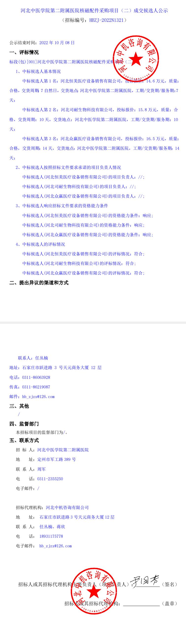 核磁配件采购项目(二)成交候选人公示