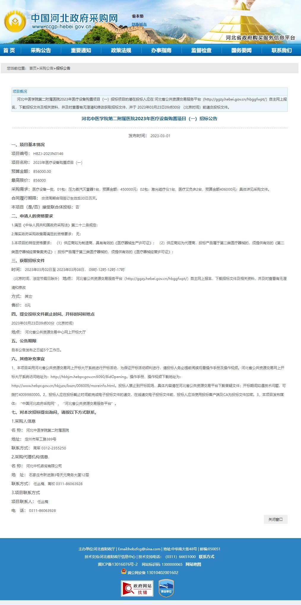 2023年医疗设备购置项目(一)招标公告