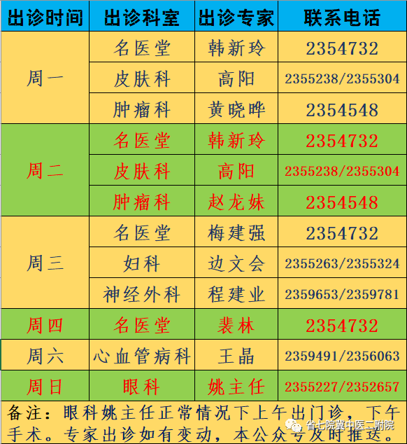 外聘专家出诊信息