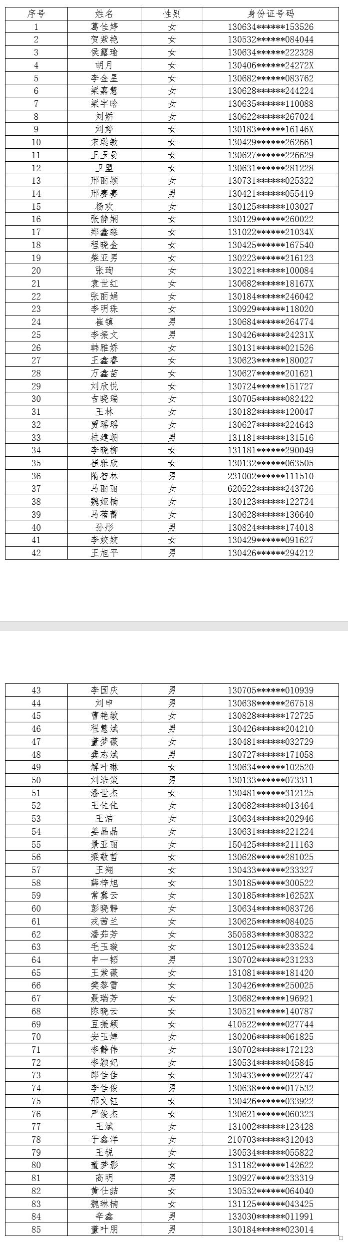 岗位编码为01-1至01-6临床医师岗位资格审核通过人员: