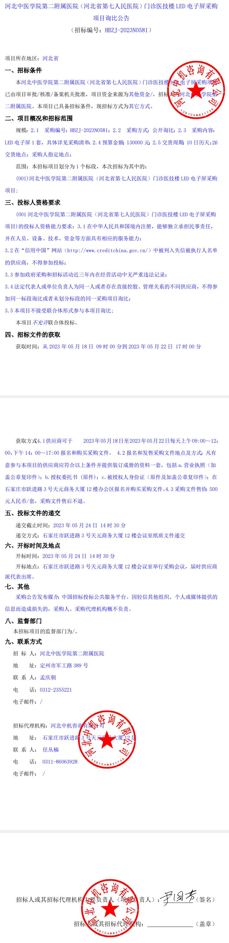 门诊医技楼LED电子屏采购项目询比公告