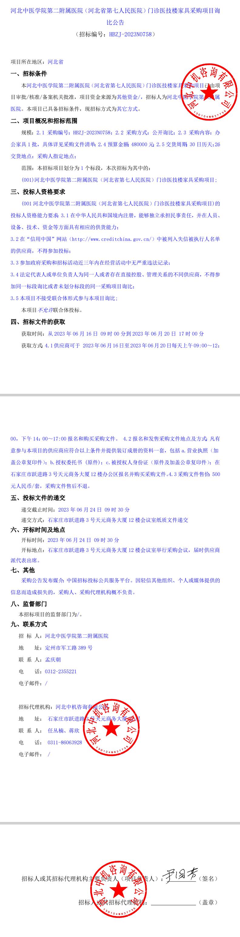 门诊医技楼家具采购项目询比公告