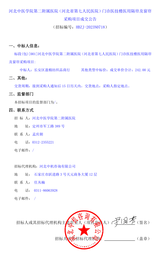 门诊医技楼医用隔帘及窗帘采购项目成交公告