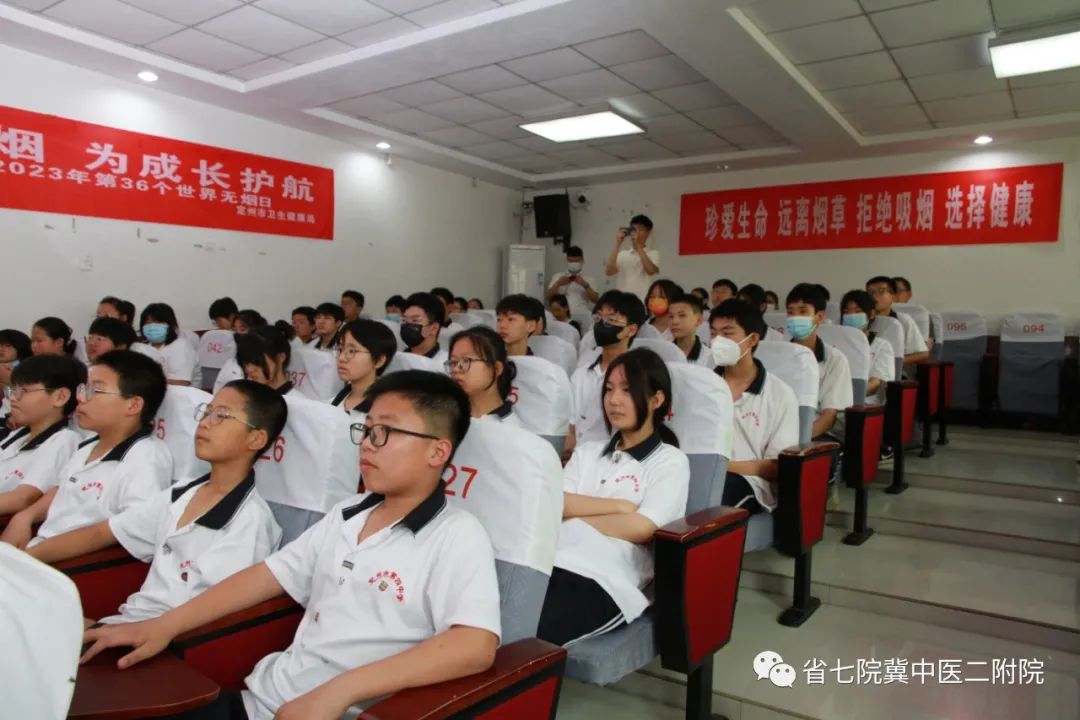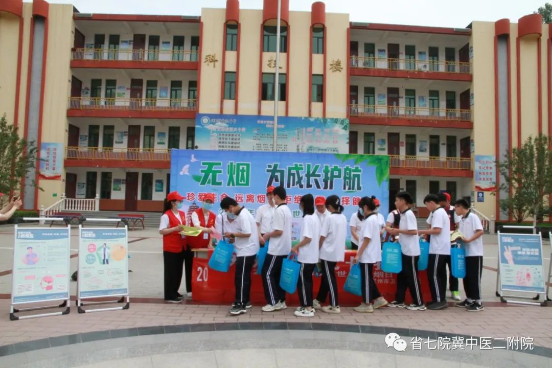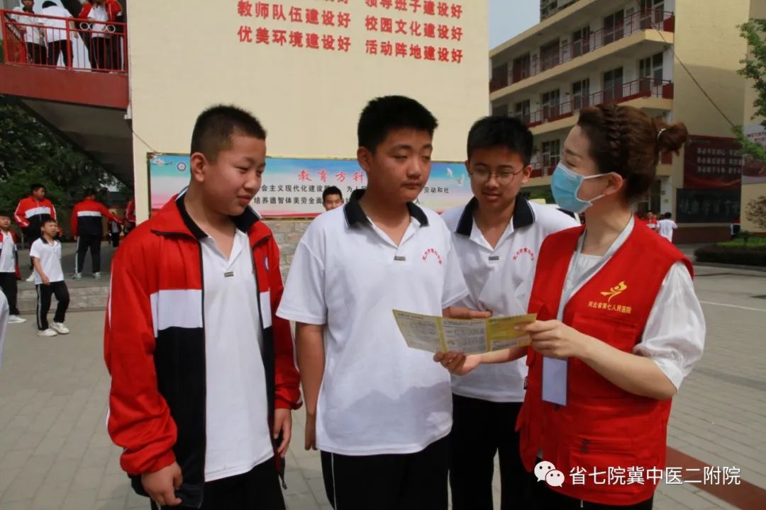 5月31日上午,我院保健科席鑫煜、总务处刘永华、肺病科李梦云走进定州市第四中学,为师生科普吸烟的危害,并通过设立控烟宣传展板、悬挂横幅,为他们发放控烟宣传手册、彩页等进行宣教。.jpg)
