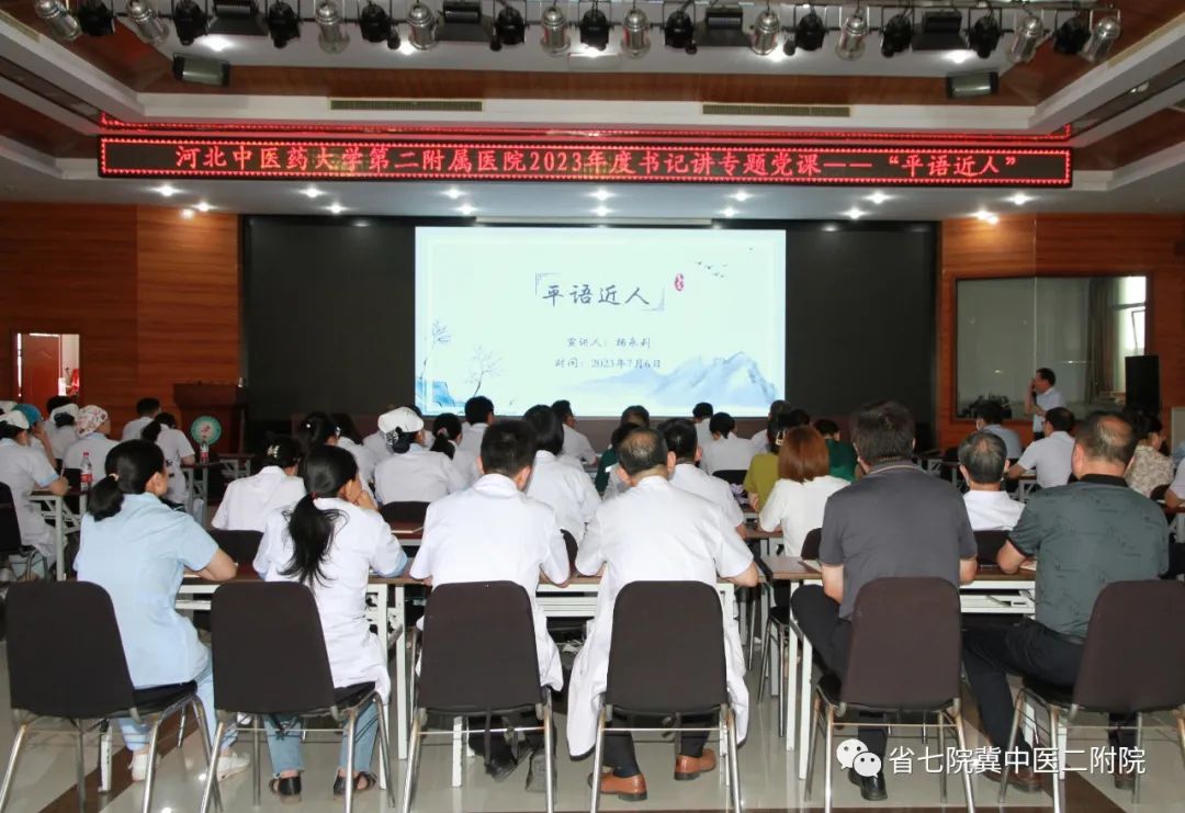 为深入开展习近平新时代中国特色社会主义思想主题教育,河北中医药大学第二附属医院于7月6日下午,组织开展了以“平语近人”为主题的专题党课,党委书记杨永利进行授课,医院全体党员参加。.jpg)
