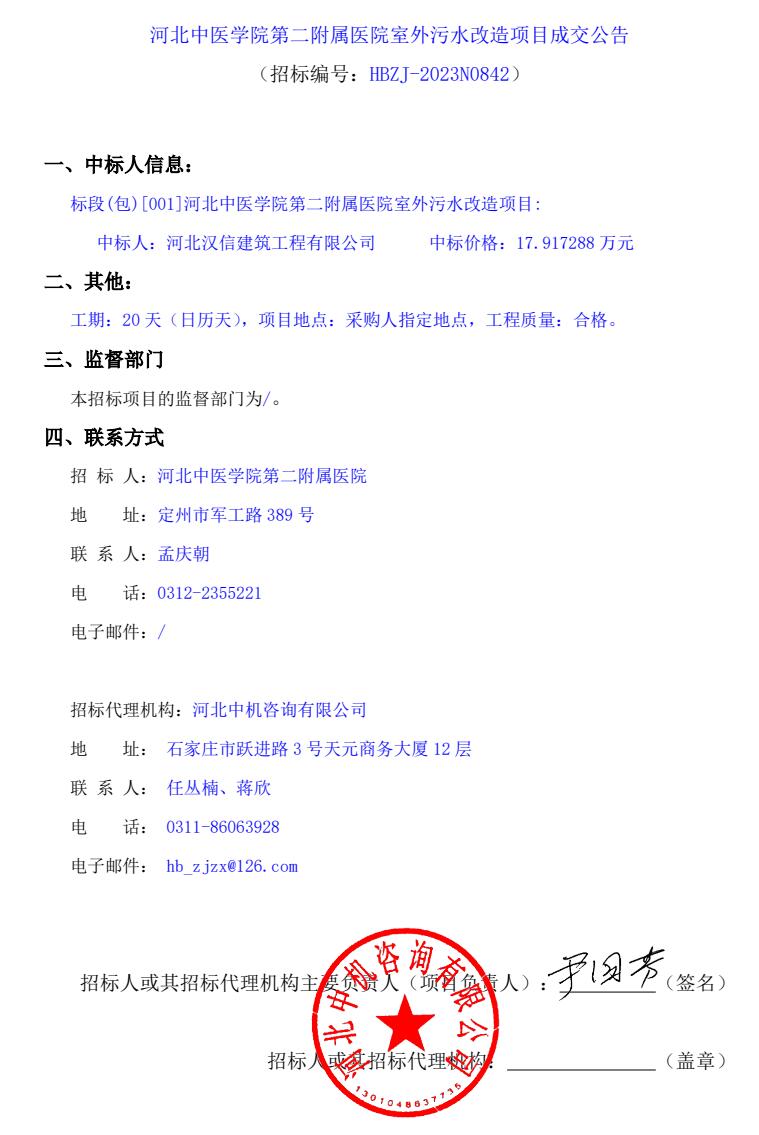 室外污水改造项目成交公告