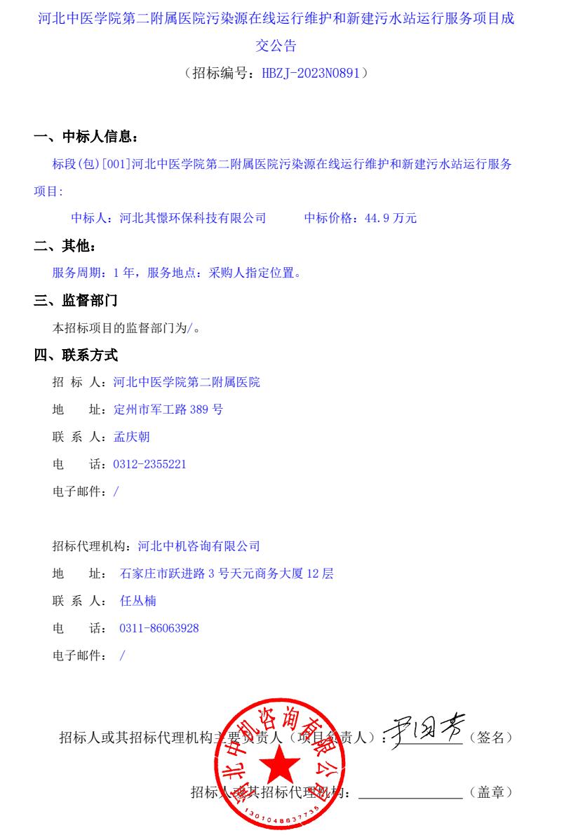 污染源在线运行维护和新建污水站运行服务项目成交公告