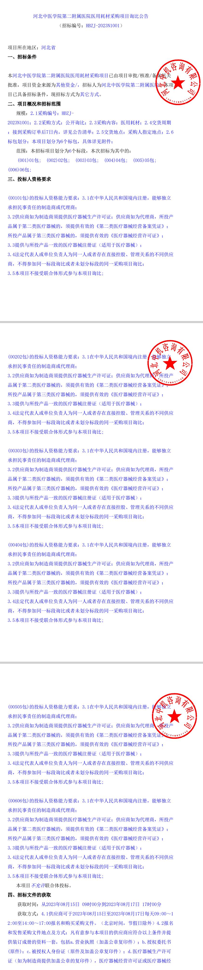 医用耗材采购项目询比公告